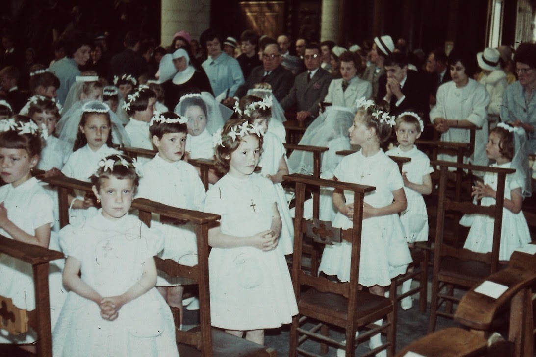 Hieronder twee foto's van de Eerste Communie in de kerk van Grimbergen.